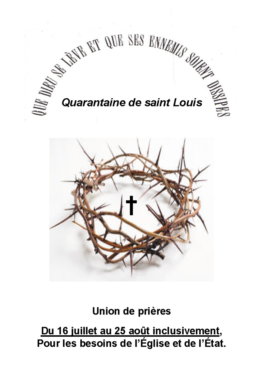 En ces temps que nous vivons, il serait bon de reprendre cette quarantaine préparatoire à la fête de saint Louis dont vous trouverez ci-dessous l’historique :